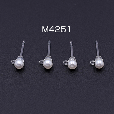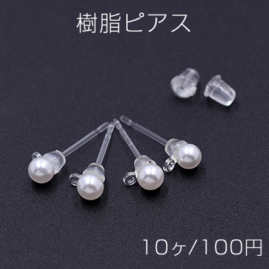 樹脂ピアス パール 4mm カン付き クリア/ホワイト【10ヶ】