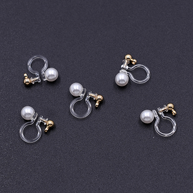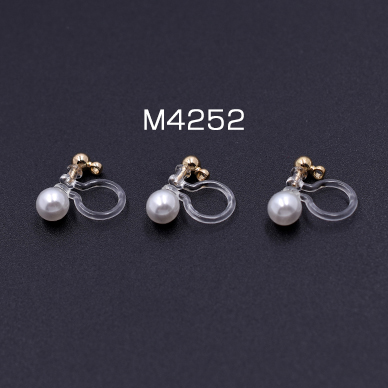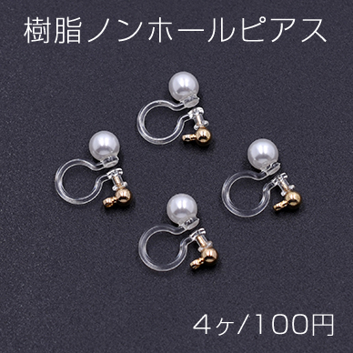 樹脂ノンホールピアス パール 5mm カン付き クリア/ホワイト/ゴールド【4ヶ】