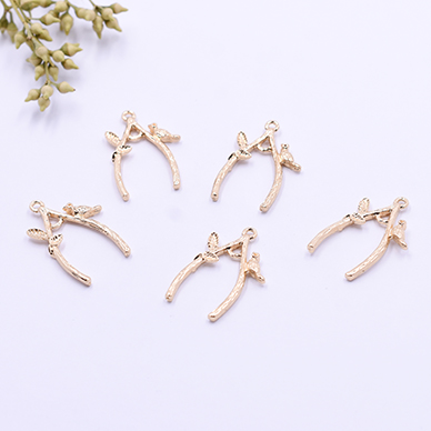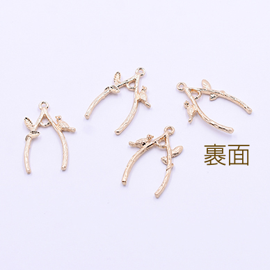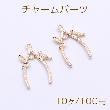 チャームパーツ 枝葉&鳥 1カン 28×30mm ゴールド【10ヶ】