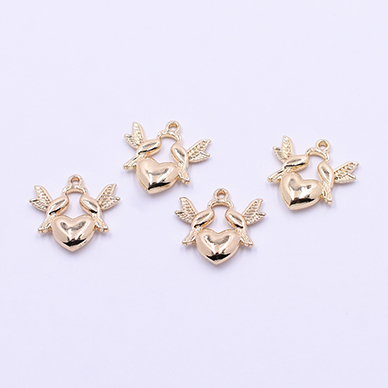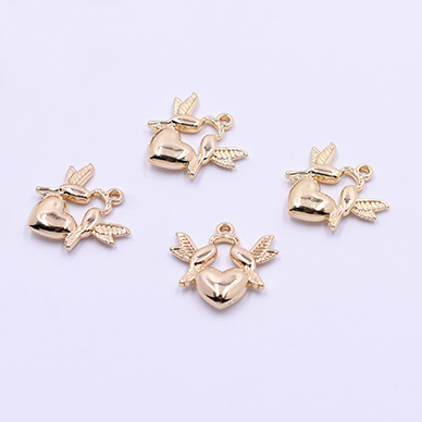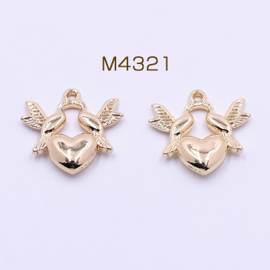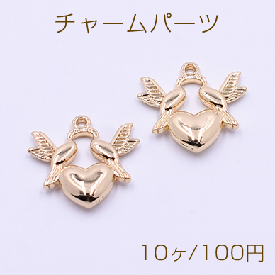 チャームパーツ 2鳥&ハート 1カン 21×22mm ゴールド【10ヶ】