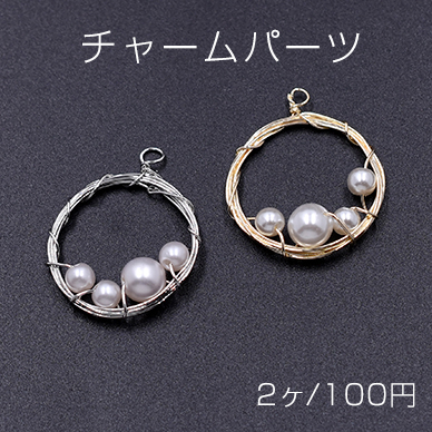 チャームパーツ サークル パール付き 22×26mm【2ヶ】