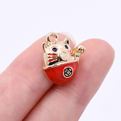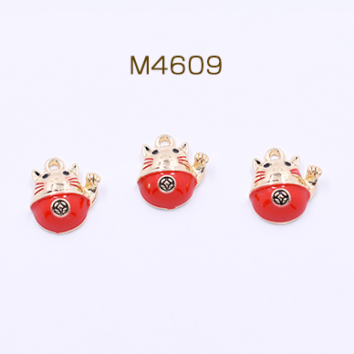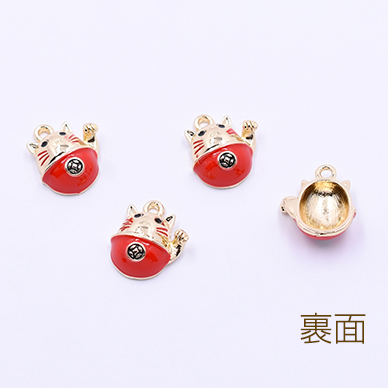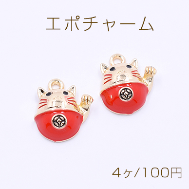 エポチャーム 招き猫 14×17mm ゴールド/レッド【4ヶ】