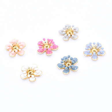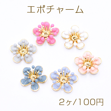 メタルエポフラワーパーツ 立体フラワーパーツ 花芯あり 五弁花 中心穴あり 16×16mm (2ヶ)