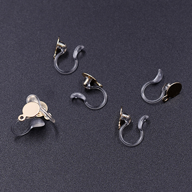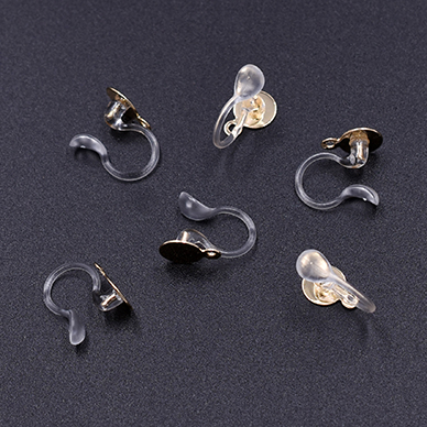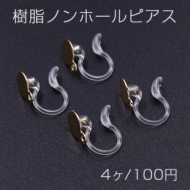 樹脂ノンホールピアス 丸皿 6mm カン付き クリア/ゴールド【4ヶ】