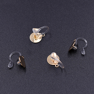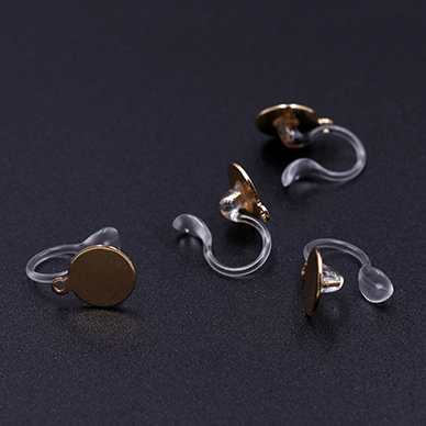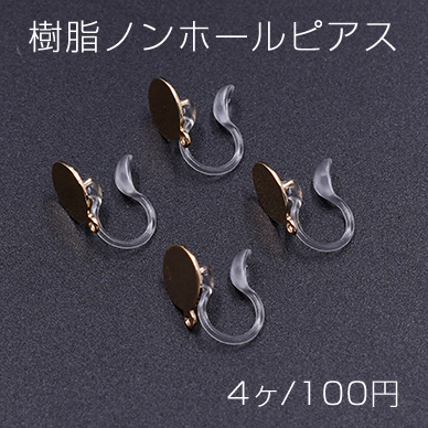 樹脂ノンホールピアス 丸皿 8mm カン付き クリア/ゴールド【4ヶ】