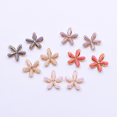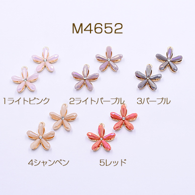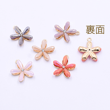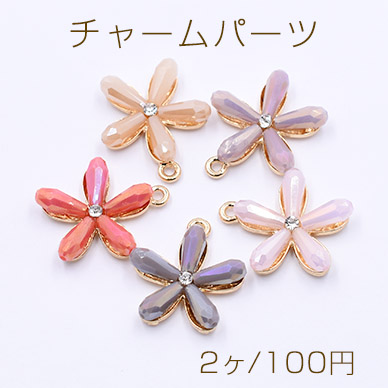 チャームパーツ 五弁花 ガラスビーズと石付き 21×23mm ゴールド【2ヶ】