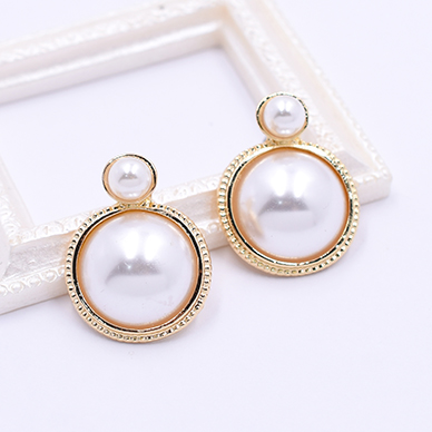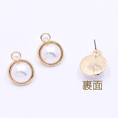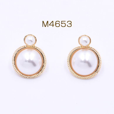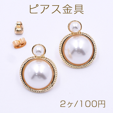 ピアス金具 2連丸型 パール付き 17×22mm ゴールド/ホワイト【2ヶ】