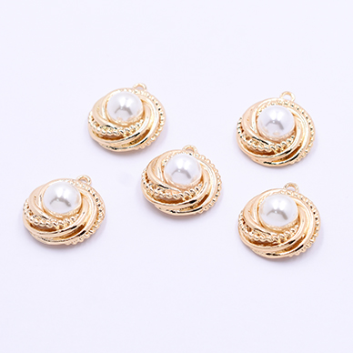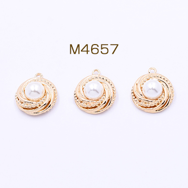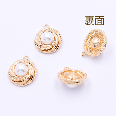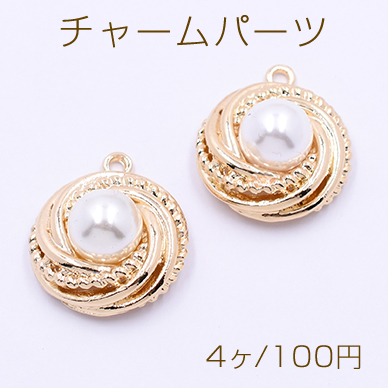 チャームパーツ デザイン パール付き 21×24mm ゴールド/ホワイト【4ヶ】