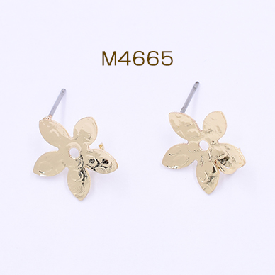 ピアス金具 五弁花 カン付き 15×15mm ゴールド【4ヶ】