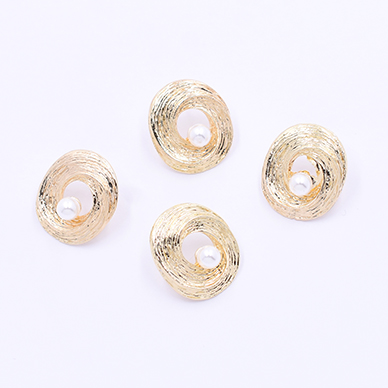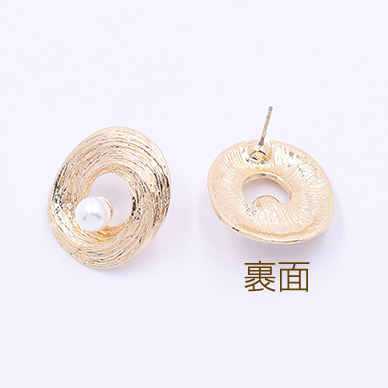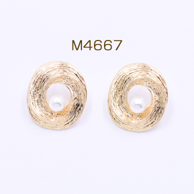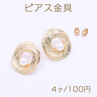 ピアス金具 デザイン パール付き 21×23mm ゴールド/ホワイト【4ヶ】