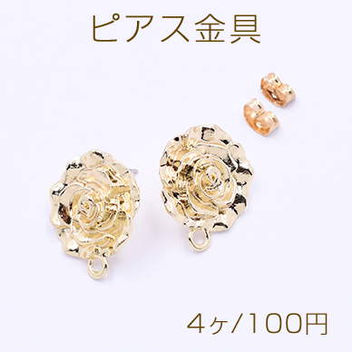 ピアス金具 フラワー カン付き 17×20mm ゴールド【4ヶ】
