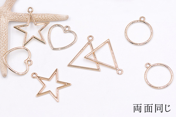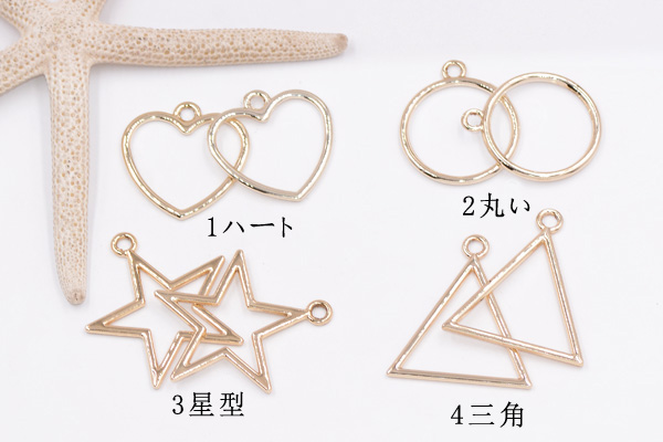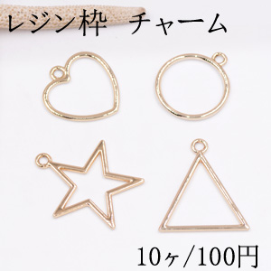 レジン枠 チャーム ハート&丸い&星型&三角 ゴールド【10ヶ】