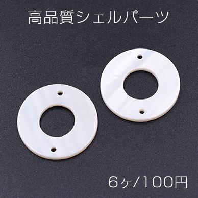 高品質シェルパーツ ドーナツ 25mm 2穴 天然素材 ホワイト【6ヶ】