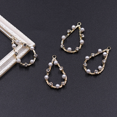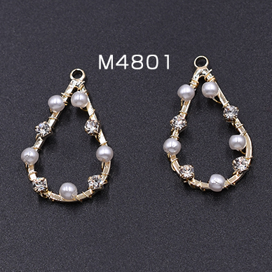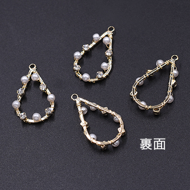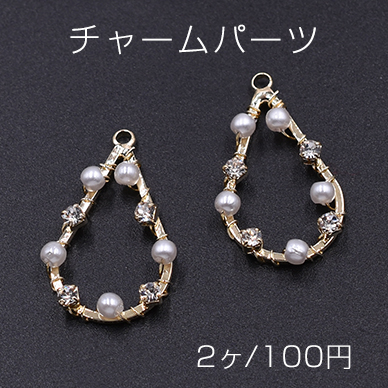 チャームパーツ 雫 パール&石付き 16×27mm ゴールド【2ヶ】