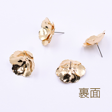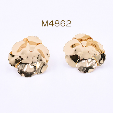数量限定 在庫一掃半額セール!ピアス金具 2連三弁花 21×21mm ゴールド【2ヶ】