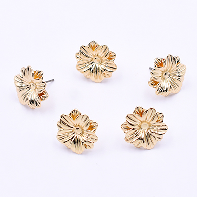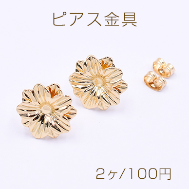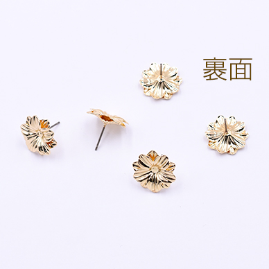 ピアス金具 2連五弁花 16×16mm ゴールド【2ヶ】