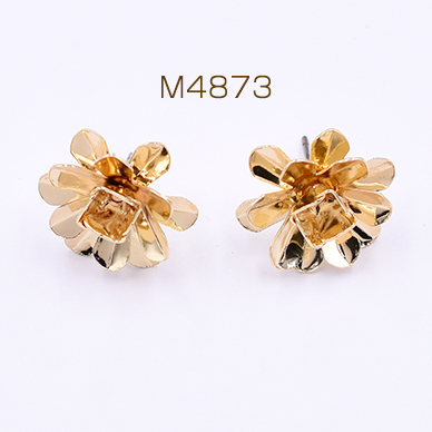 ピアス金具 2連6弁花 16×16mm ゴールド【2ヶ】