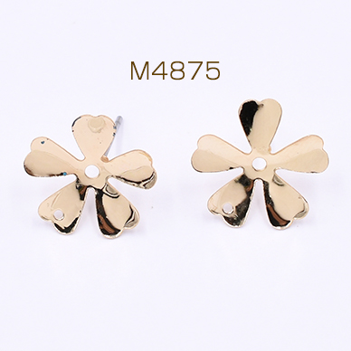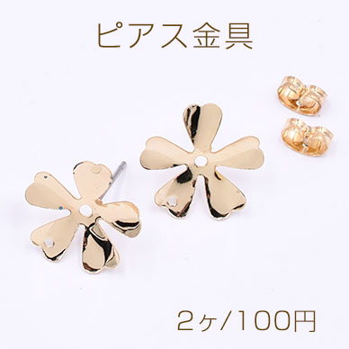ピアス金具 5弁花 15×15mm 穴あり ゴールド【2ヶ】