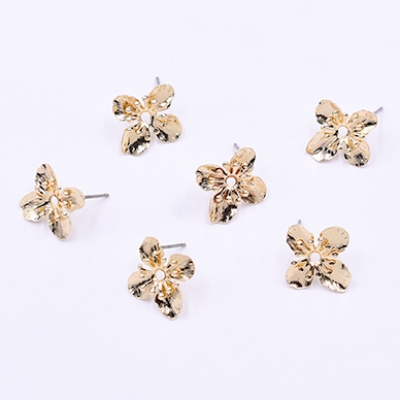 ピアス金具 4弁花 17×18mm 穴あり ゴールド【2ヶ】