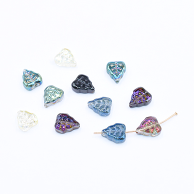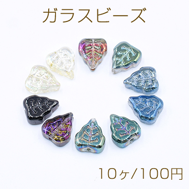 ガラスビーズ リーフ 10×12mm オーロラ【10ヶ】