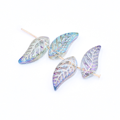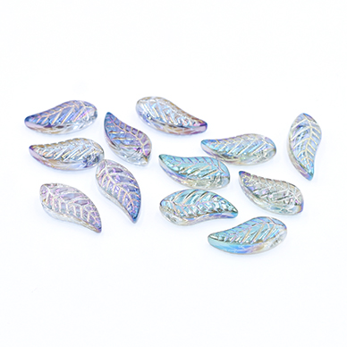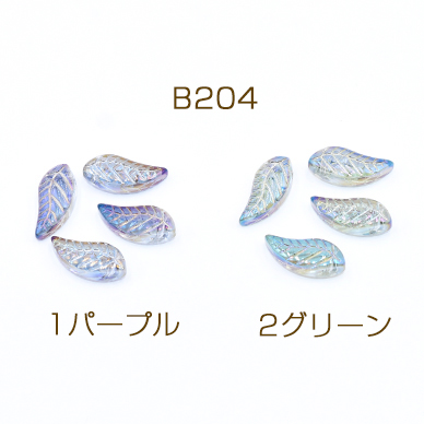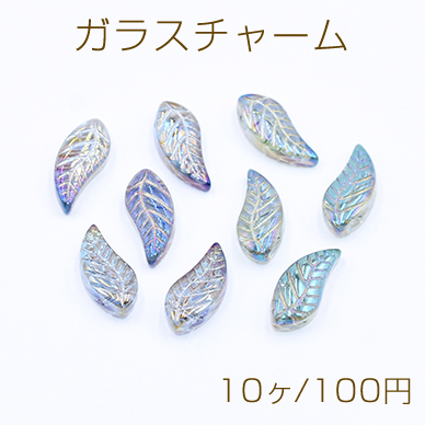 ガラスチャーム リーフB 横穴 8×18mm オーロラ【10ヶ】