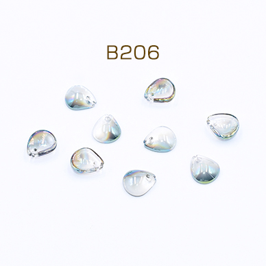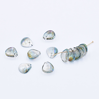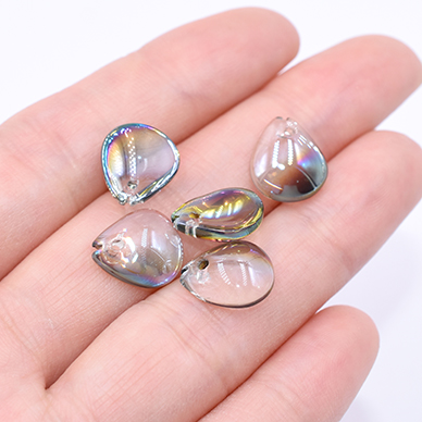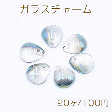 ガラスチャーム 花びら 1穴 10×12mm オーロラ ライトグリーン【20ヶ】