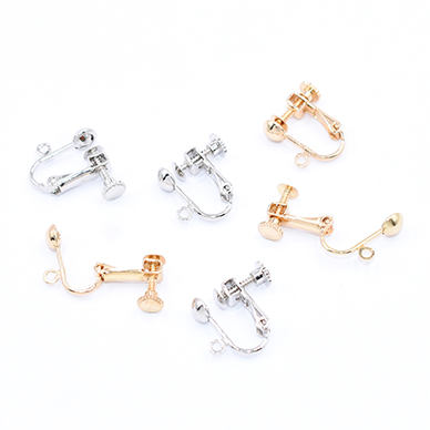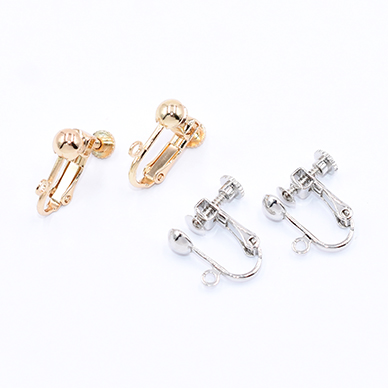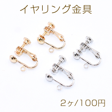 ネジバネ式イヤリング金具 カン付き 半玉3mm(2ヶ)
