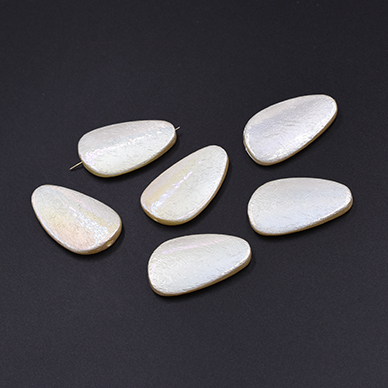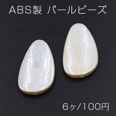 ABS製 パールビーズ 変形雫型 21×35mm AB彩 ベージュ【6ヶ】