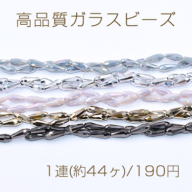 高品質ガラスビーズ 雫カット 6×15mm メッキ【1連(約44ヶ)】