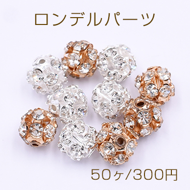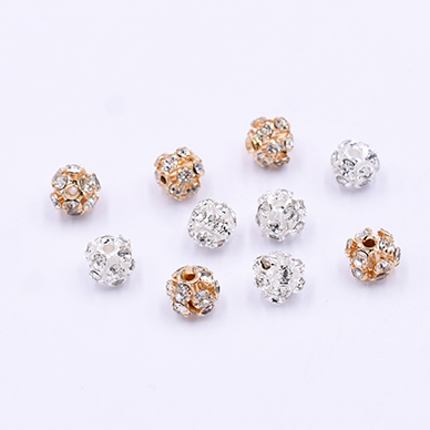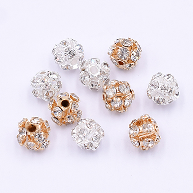 ラインストーンボール メタルビーズ スペーサービーズ 丸玉 縦穴 6mm(50ヶ)