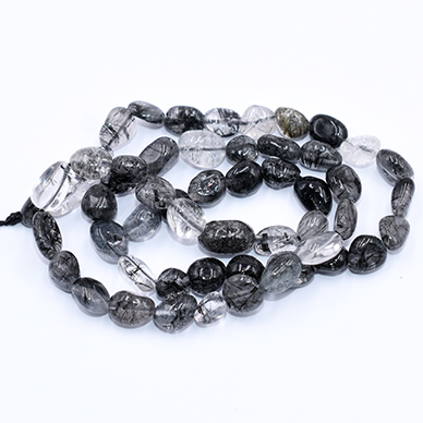 高品質天然石ビーズ ブラックルチルクォーツ さざれ 5-8mm【1連(約38cm)】