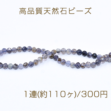 高品質天然石ビーズ コーディエライト ラウンドカット 3mm【1連(約110ヶ)】