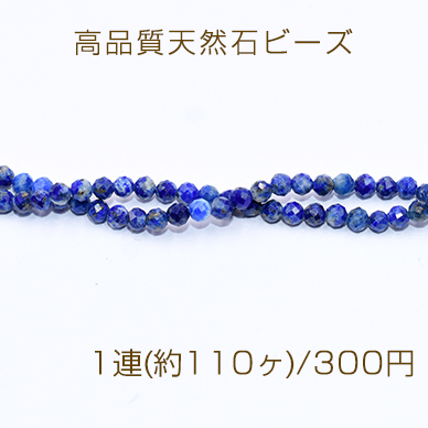 高品質天然石ビーズ ラピスラズリ ラウンドカット 3mm【1連(約110ヶ)】