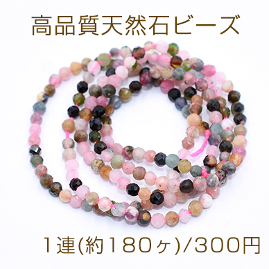 高品質天然石ビーズ トルマリン ラウンドカット 2mm【1連(約180ヶ)】