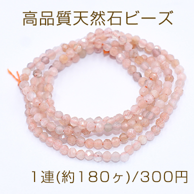 高品質天然石ビーズ サンストーン ラウンドカット 2mm【1連(約180ヶ)】