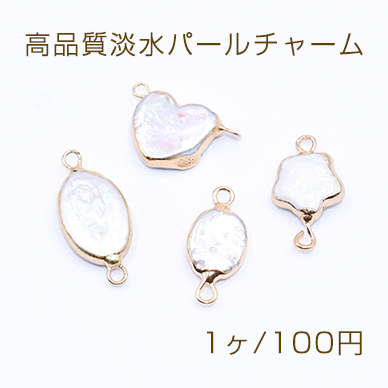 高品質淡水パールチャーム オーバル/ハート/フラワー 2カン付き【1ヶ】