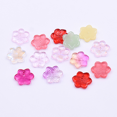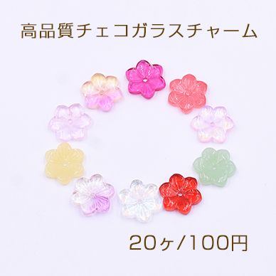 高品質チェコガラスチャーム フラワー 穴あり 14×14mm 全10色