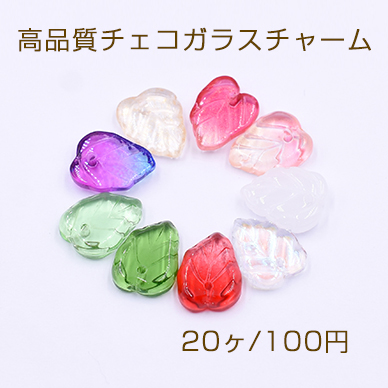 高品質チェコガラスチャーム リーフ 1穴 10×13mm 全9色