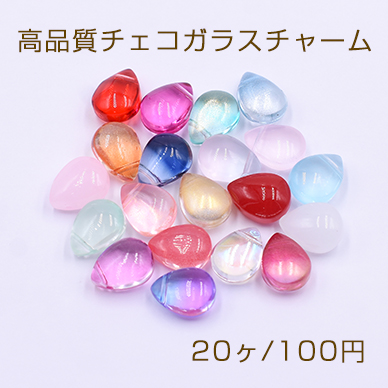 高品質チェコガラスチャーム 雫 横穴 9×12mm 全21色 No.11-21