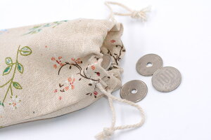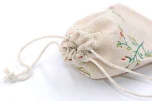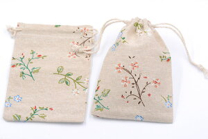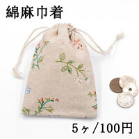 綿麻巾着 フラワー柄 100×140mm ベージュ【5ヶ】