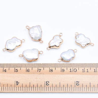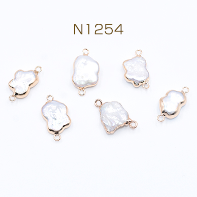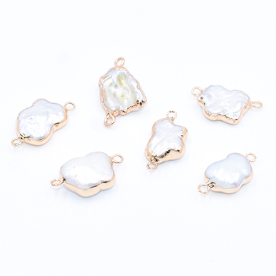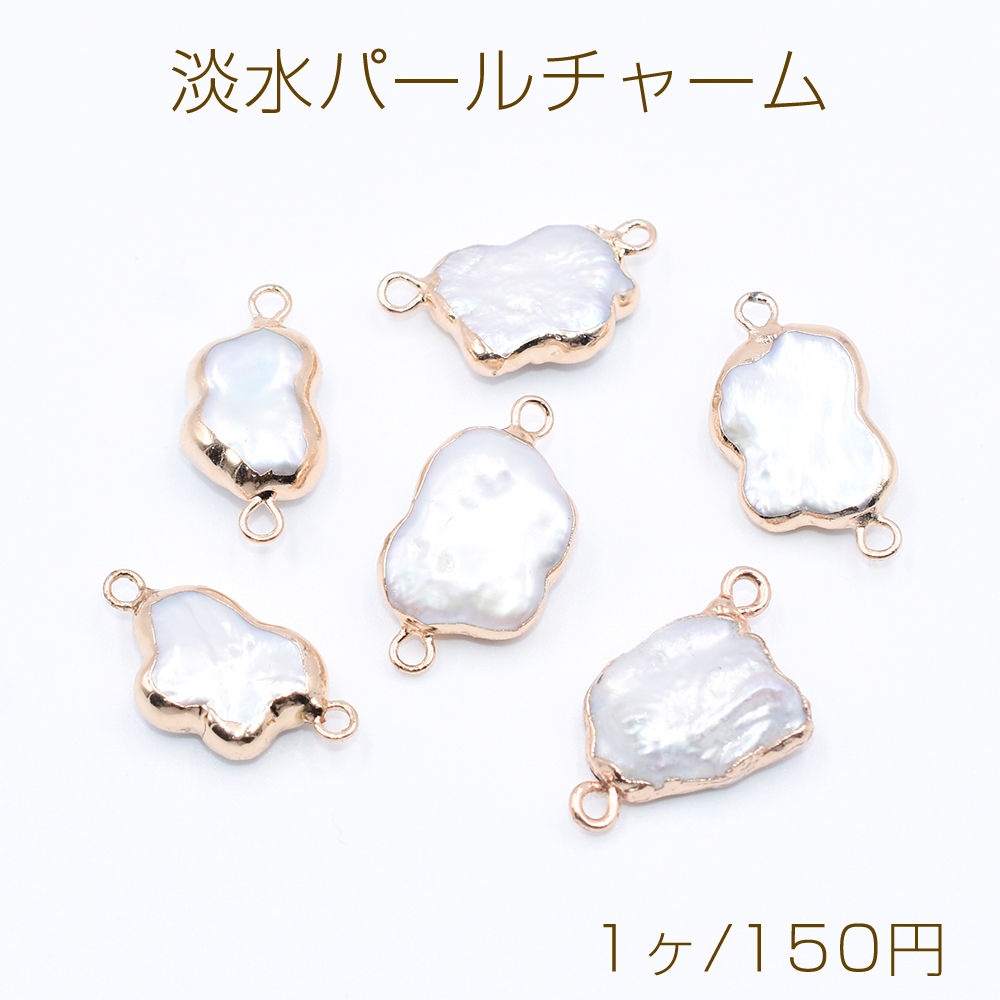 高品質淡水パールチャーム No.4 不規則 ゴールド/ホワイト 2カン付き【1ヶ】