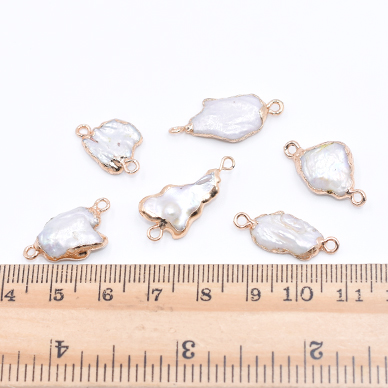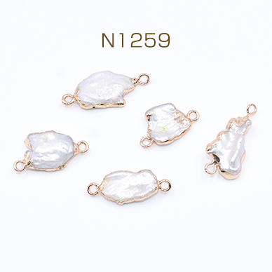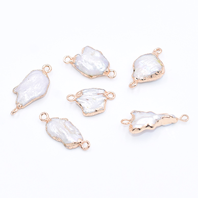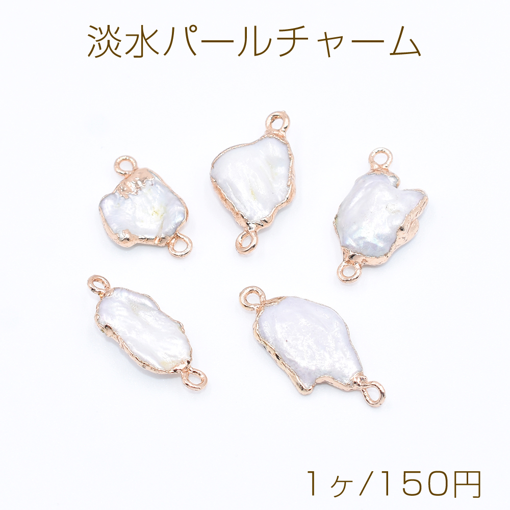 高品質淡水パールチャーム No.8 不規則 ゴールド/ホワイト 2カン付き【1ヶ】