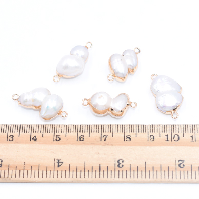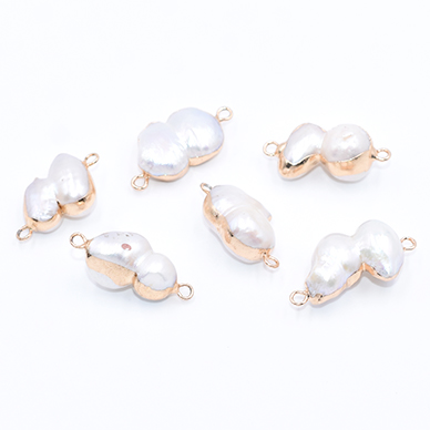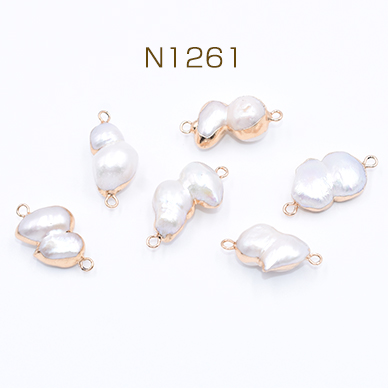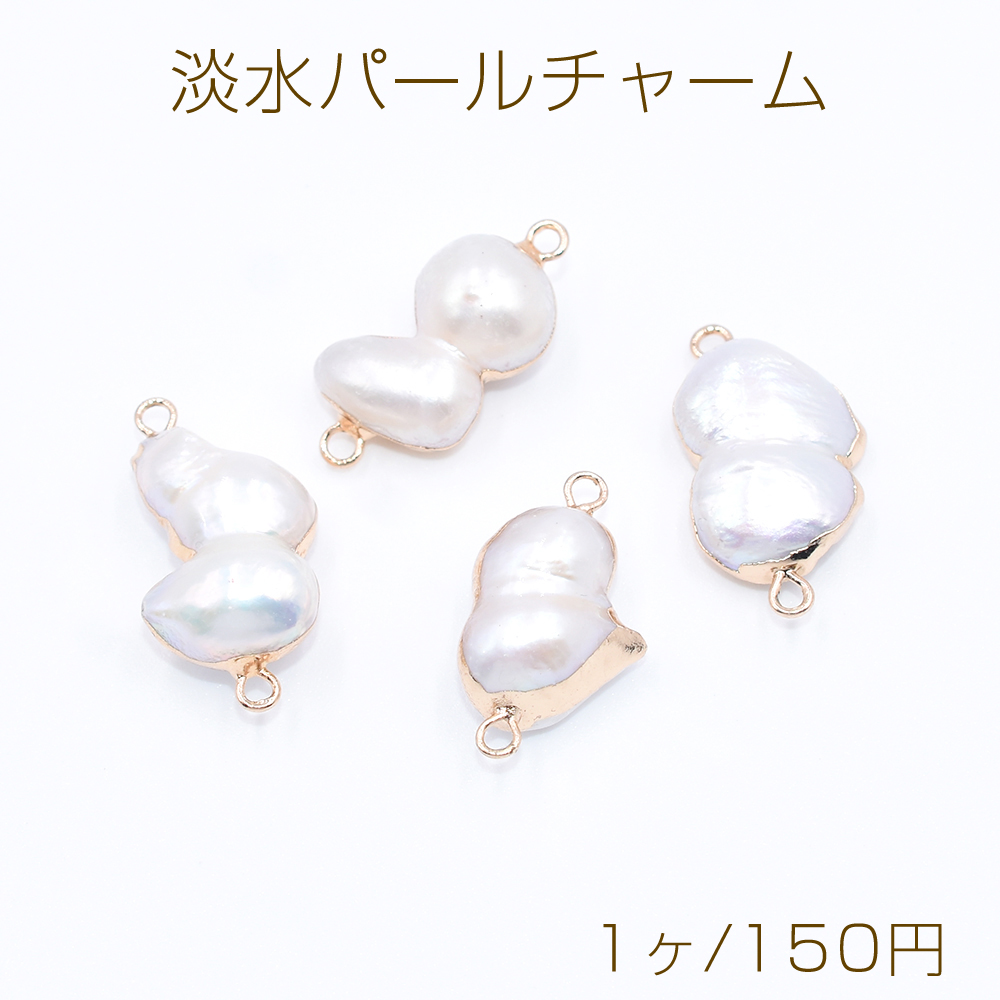 高品質淡水パールチャーム No.10 不規則 ゴールド/ホワイト 2カン付き【1ヶ】