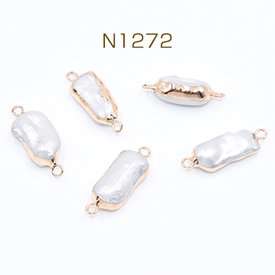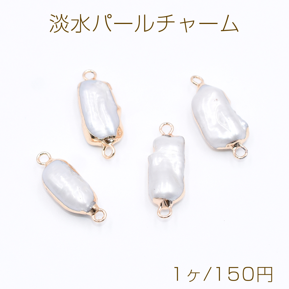 高品質淡水パールチャーム No.21 ゴールド/ホワイト 2カン付き【1ヶ】