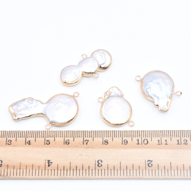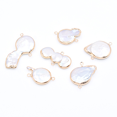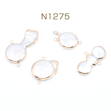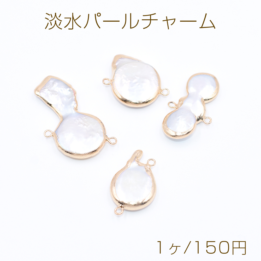 高品質淡水パールチャーム No.24 不規則 ゴールド/ホワイト 2カン付き【1ヶ】