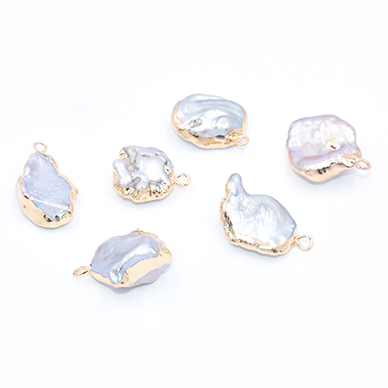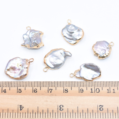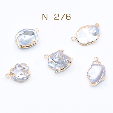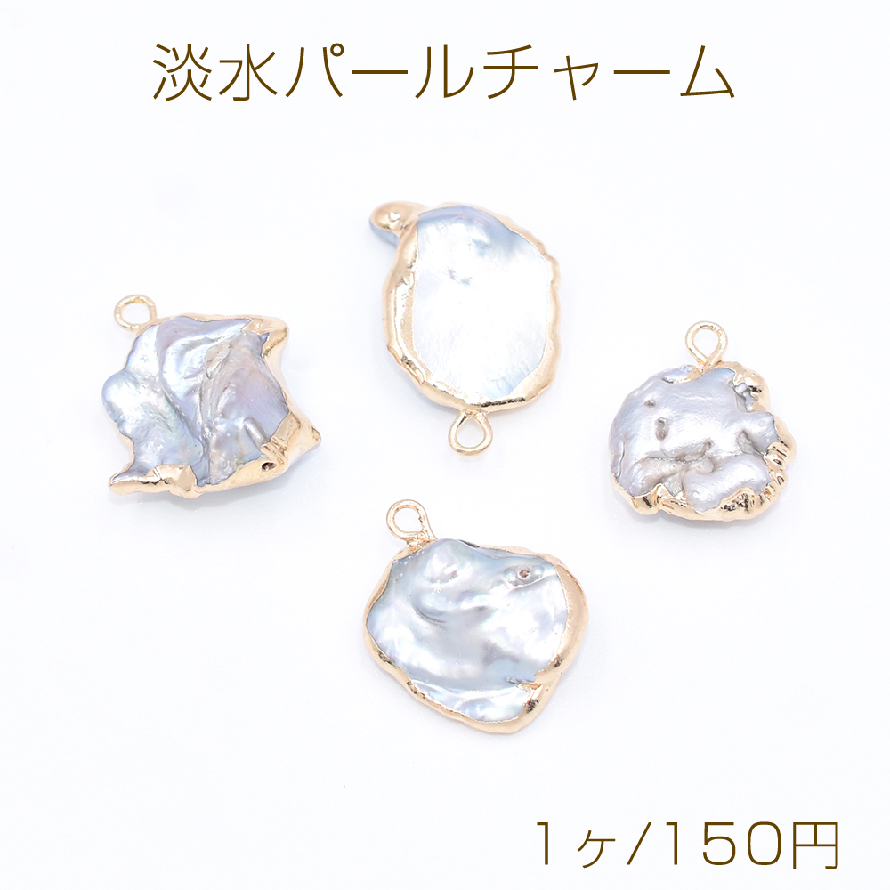 高品質淡水パールチャーム No.25 不規則 ゴールド/グレー カン付き【1ヶ】