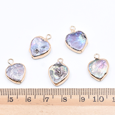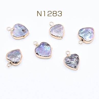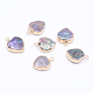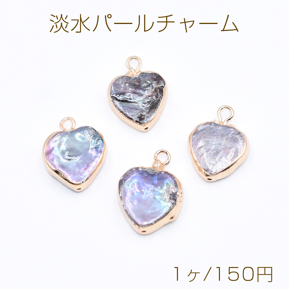 高品質淡水パールチャーム No.32 ハート ゴールド/パープル カン付き【1ヶ】