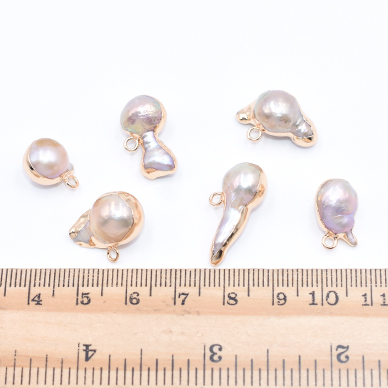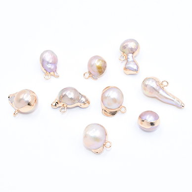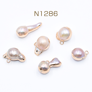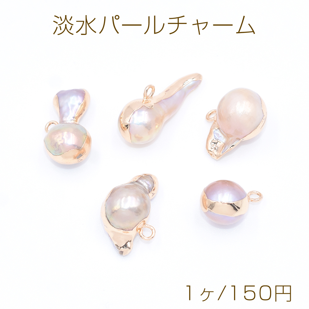 高品質淡水パールチャーム No.35 不規則 ゴールド/ピンク カン付き【1ヶ】
