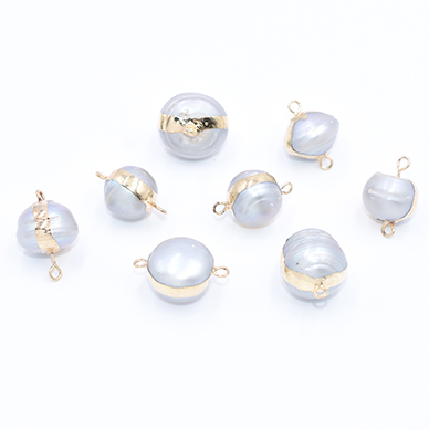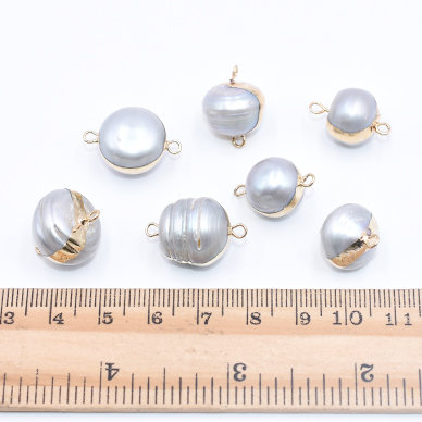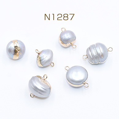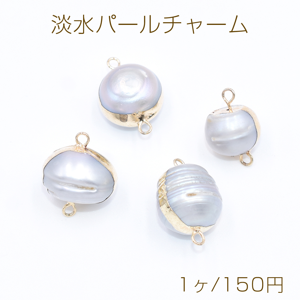 高品質淡水パールチャーム No.36 不規則丸玉 ゴールド/グレー 2カン付き【1ヶ】
