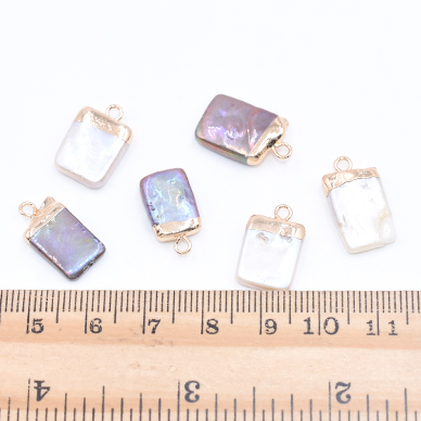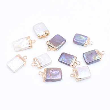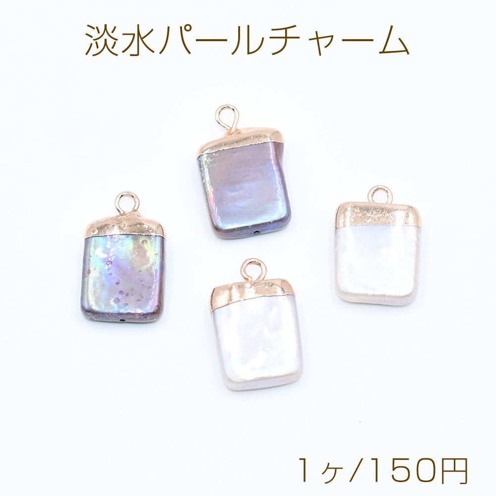 高品質淡水パールチャーム No.37 長方形 ゴールド カン付き【1ヶ】